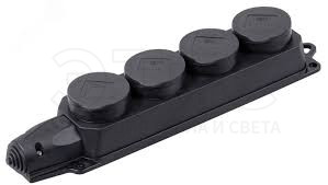Розетка четырехместная 16А 220А IP44 с защитными крышками каучук ОМЕГА