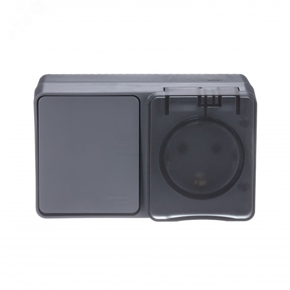 Блок- розетка открытая З/К С/Ш 16А 250В+выкл 1кл. IP54 10А АНТРАЦИТ AtlasDesign Profi54