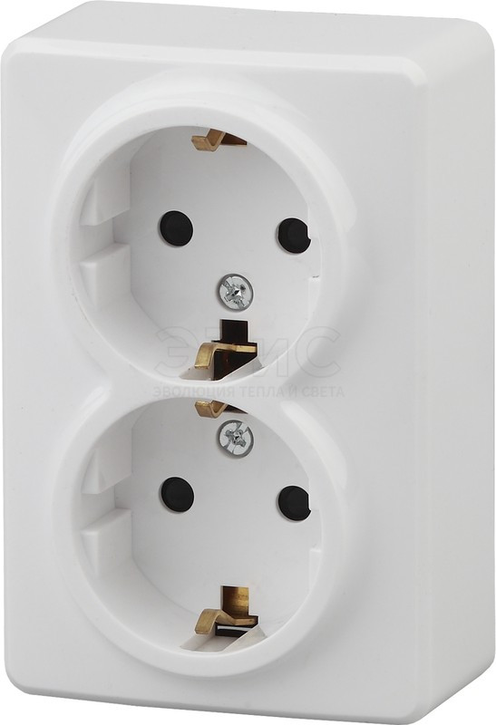 Розетка двойная наружная 3/К Б/Ш 16А 250В IP20 однофазная винтовые клеммы белая 11-2205-01 Эксперт