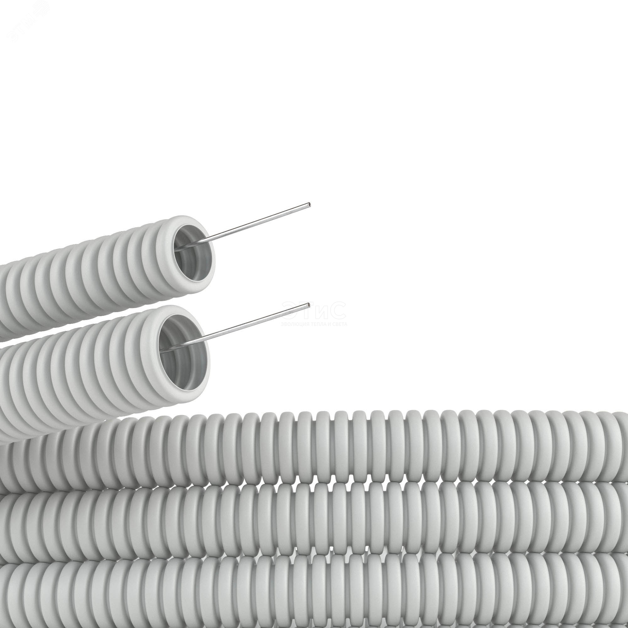 Труба гофрированная ПВХ 50мм с протяжкой легкая серая (15м)