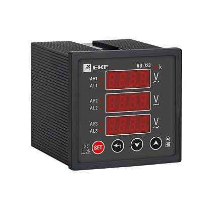 Вольтметр 72х72мм 9999Вт 0-3200В цифровой VD-723 на панель 3ф PROxima