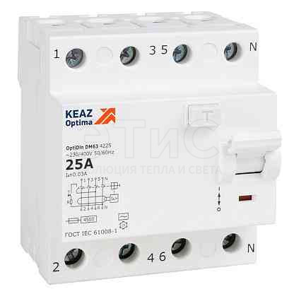 Выключатель дифференциального тока УЗО 4П 40А 300мА AС 4,5кА OptiDin DM63-4440-AC-4,5-УХЛ4 без защиты от сверхтоков