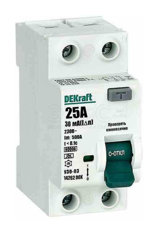 Выключатель дифференциального тока УЗО 2П 25А 6кА 30мА тип А УЗО-03